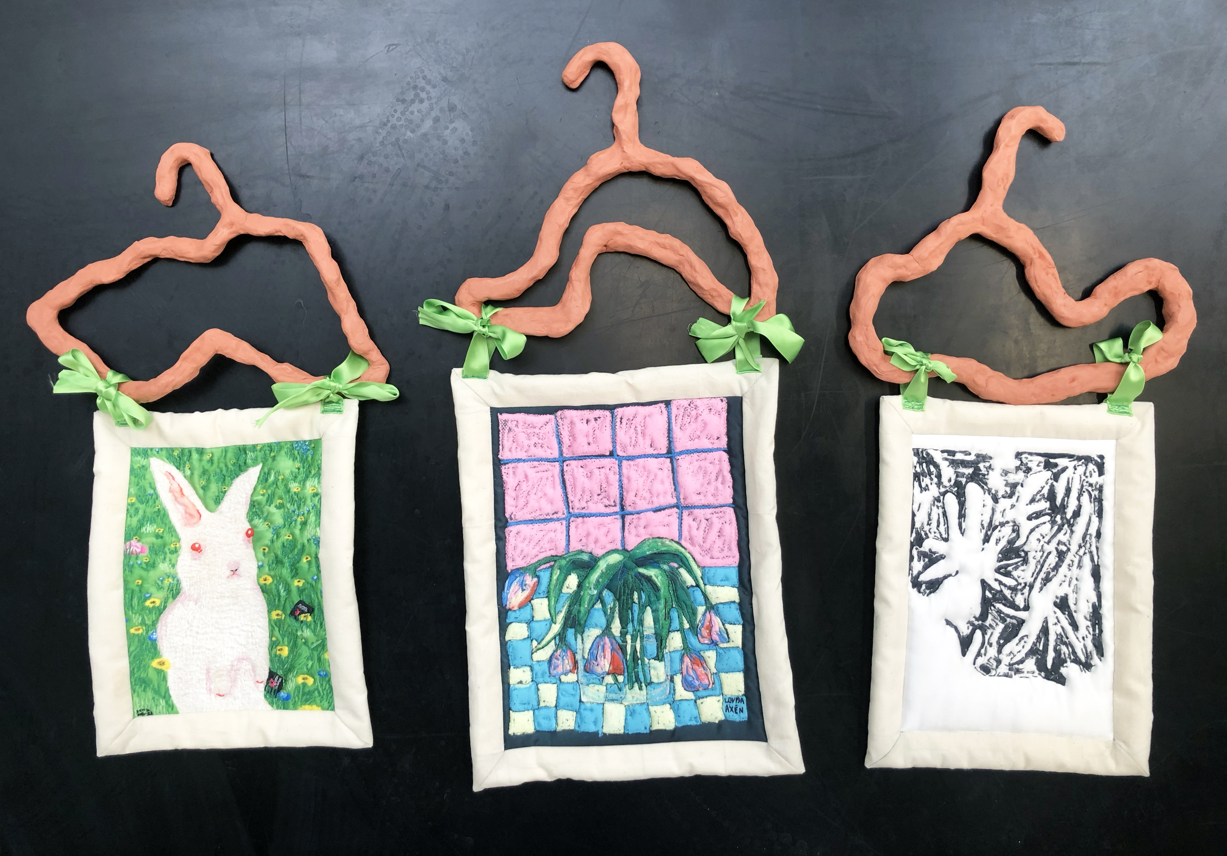 Hang In There was an exhibition and shop in the "Handarbetets vänners Gallery", where 45 artists was invited by DotDotDot (Artist run platform casting a spotlight on challenging craft) to create clothes hangers and contemporary textile art for the future